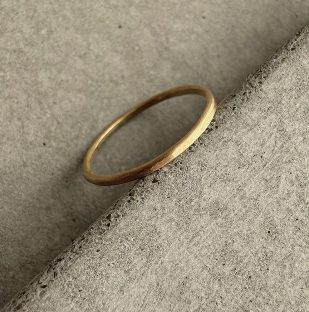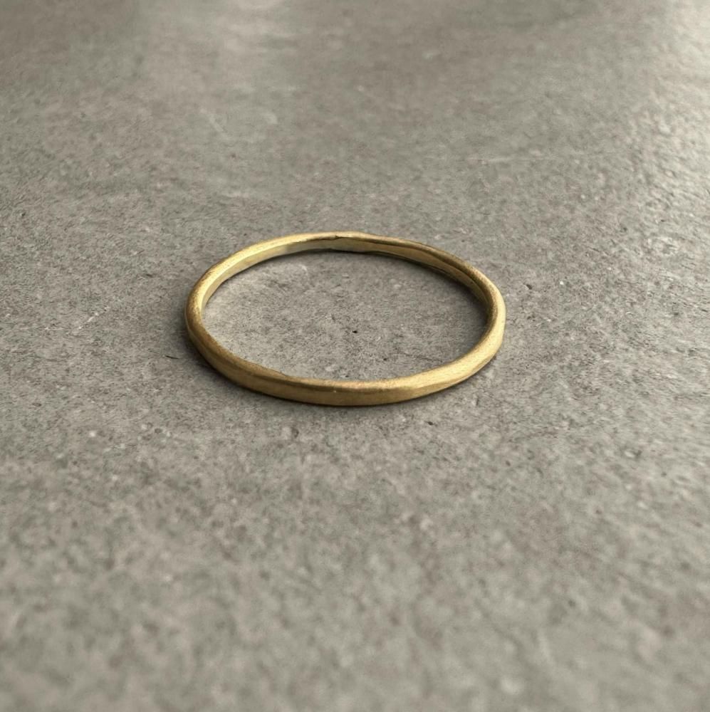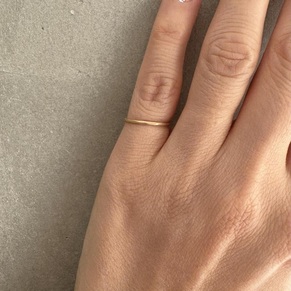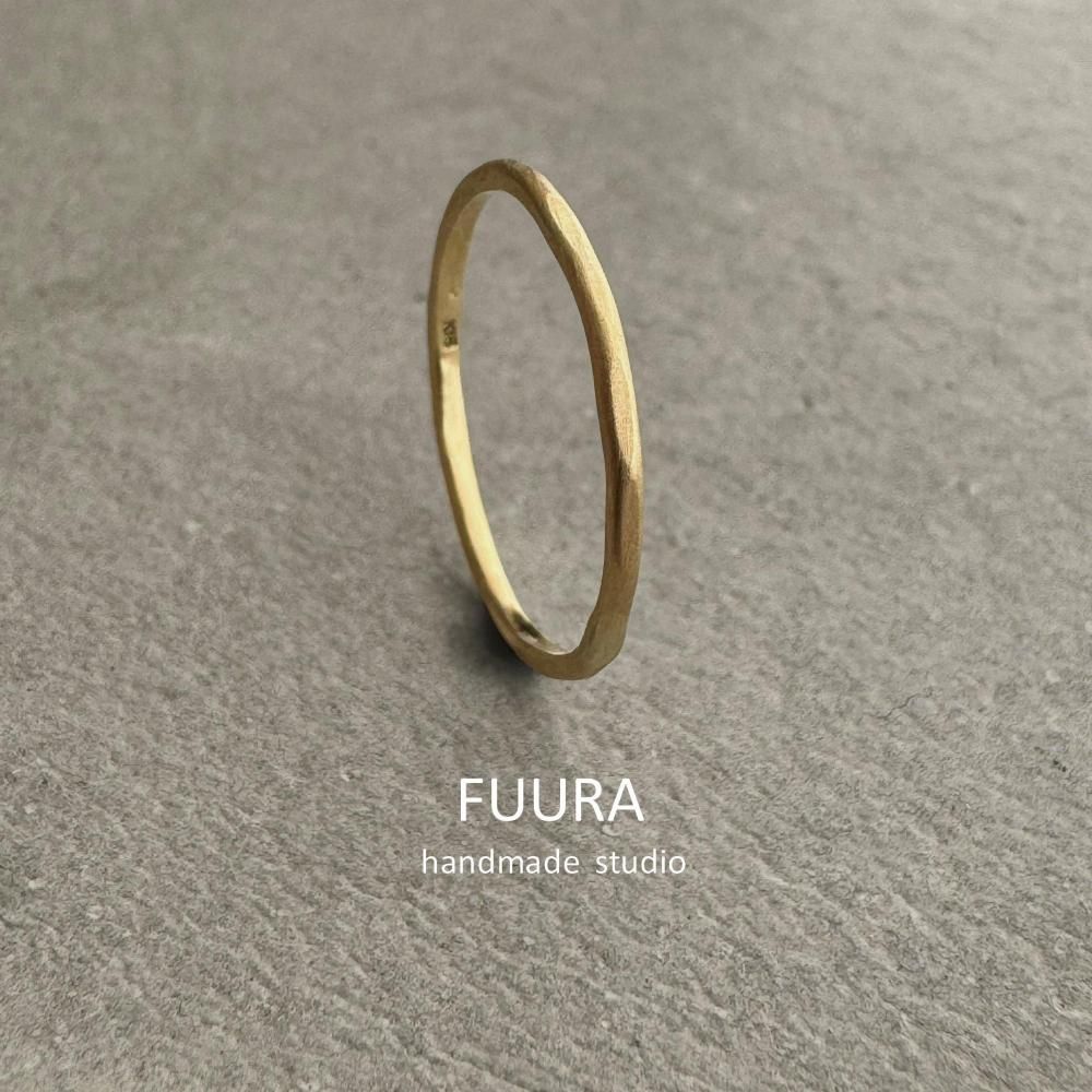 【K18】1mm ring 槌目マット /イエローゴールド/指輪/リング/シンプル/